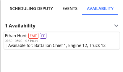 7. The availability tab allows you to see who has marked themselves available, unavailable, or available based on assignment for the day.