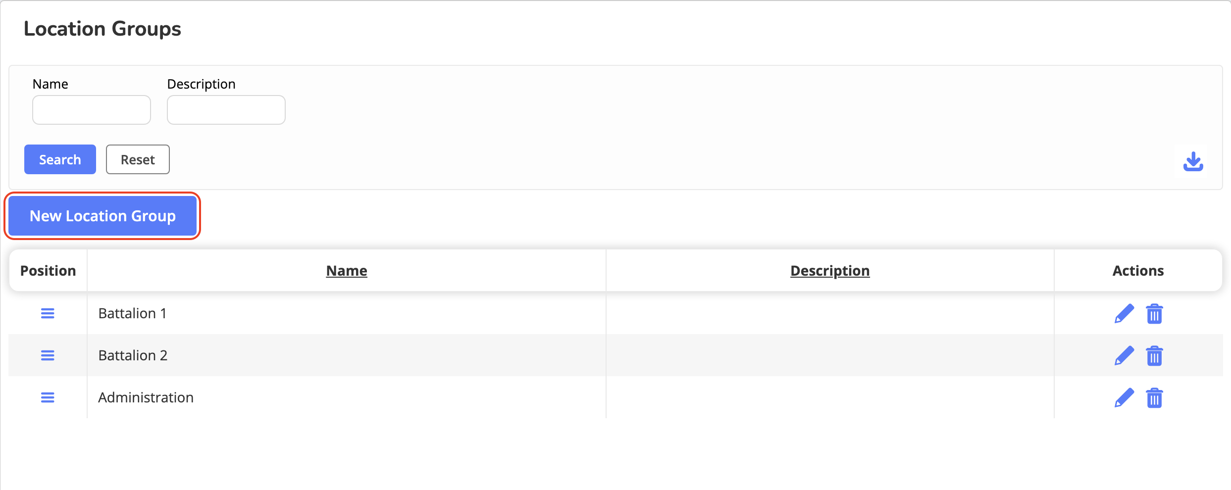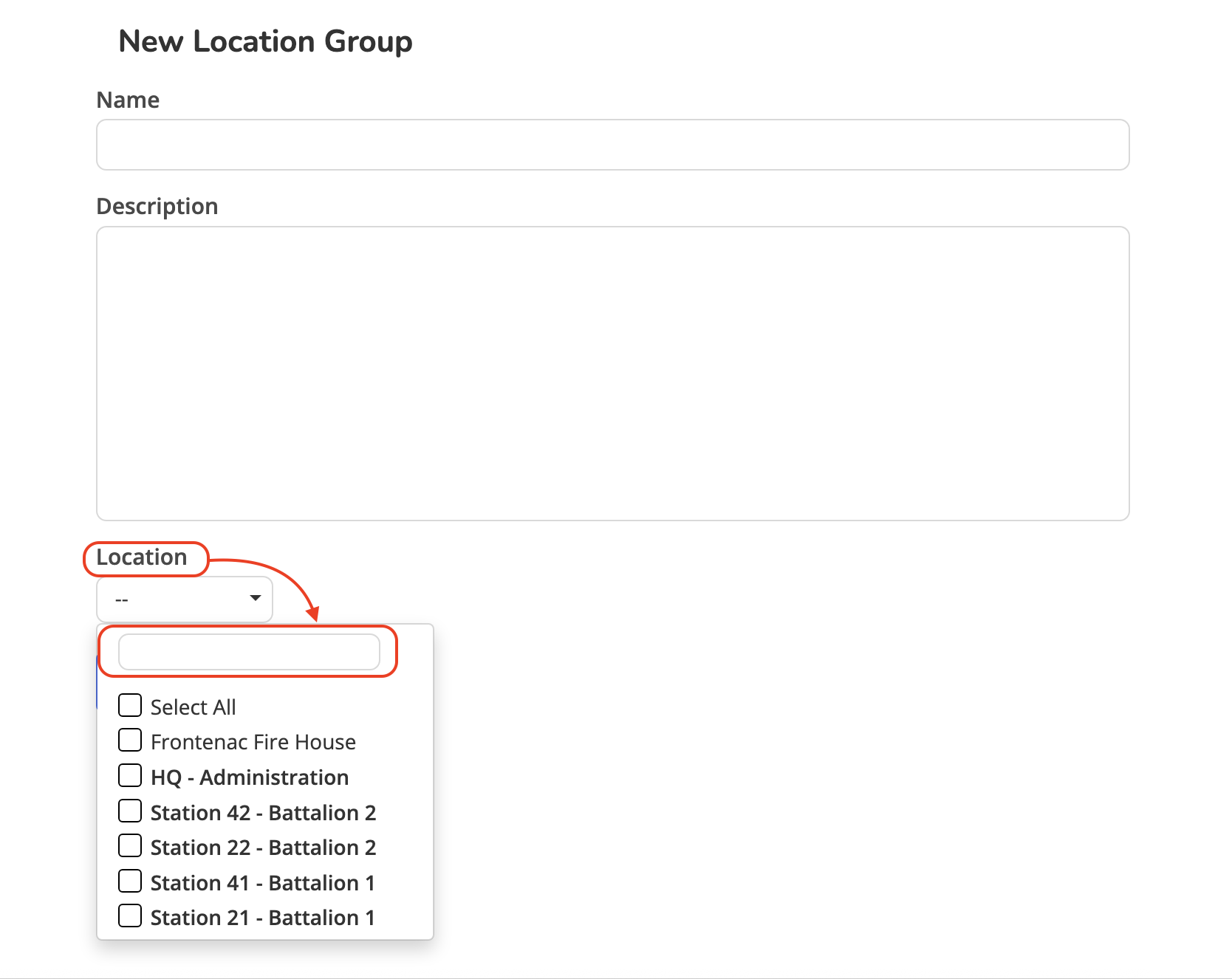 Location Groups help you organize operational locations (such as stations or other asset locations) so users can filter and manage assets by where they’re assigned or stored.