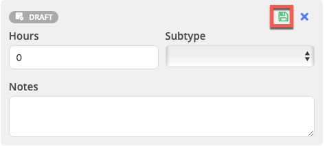 Enter the hour amount, add any explanatory notes, and click the save icon.