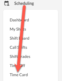 Your time card for the current work week will display, showing all scheduled and recorded hours.