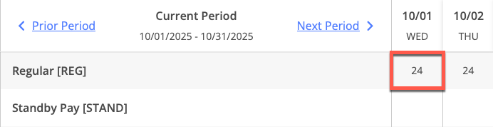 To add hours to a day that doesn't have an entry, click on the blank space for that day.