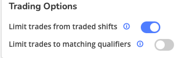 Limit Trades from a traded shift - When enabled, prevents users from trading away a shift they have already acquired through a trade. This prevents complex trade chains and maintains schedule integrity.
