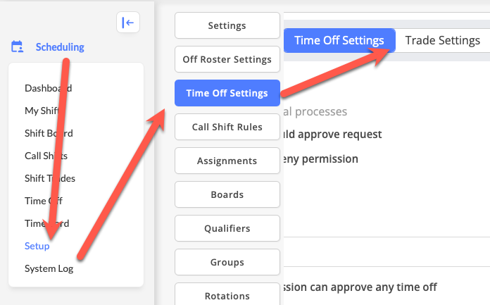 The Trade Settings feature enables administrators to establish policies and workflows for shift trades within their department. This configuration determines how personnel request shift trades, who approves them, what work types apply, and what restrictions exist. Properly configured trade settings ensure compliance with labor agreements, maintain qualified staffing levels, and streamline the approval process while giving personnel flexibility to manage their schedules.