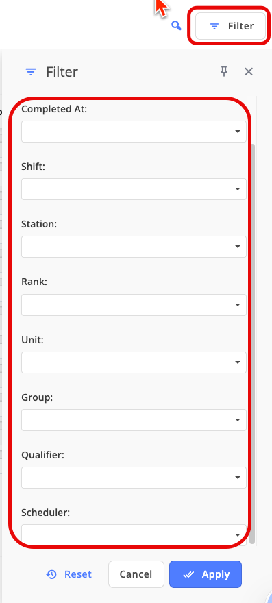 - What: Extended Filter Options - Added scheduler, shift station, rank, unit, group and qualifier filters to assigned course workflow