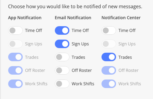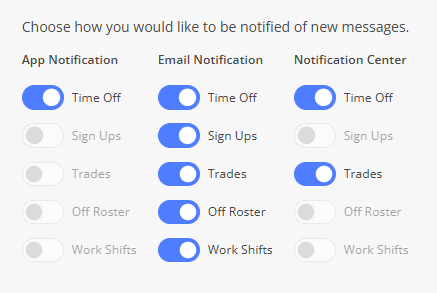 A: You must have at least one notification method enabled (App Push Notifications, Email, or Notification Center) before the system will allow you to save your preferences.
