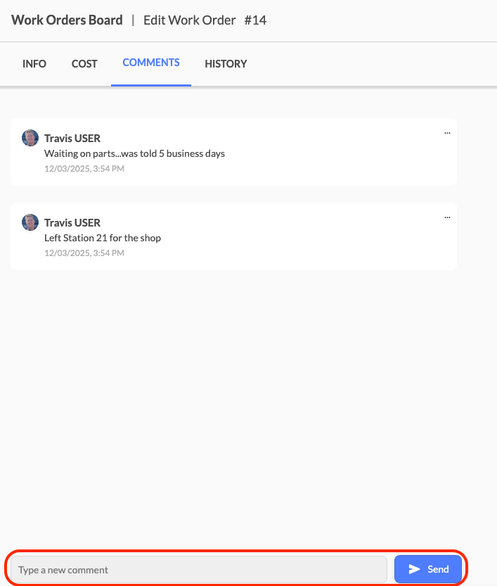 Comment Documentation: Add comments throughout the work order lifecycle to document progress, challenges encountered, or decisions made. This creates a valuable reference for similar future work.