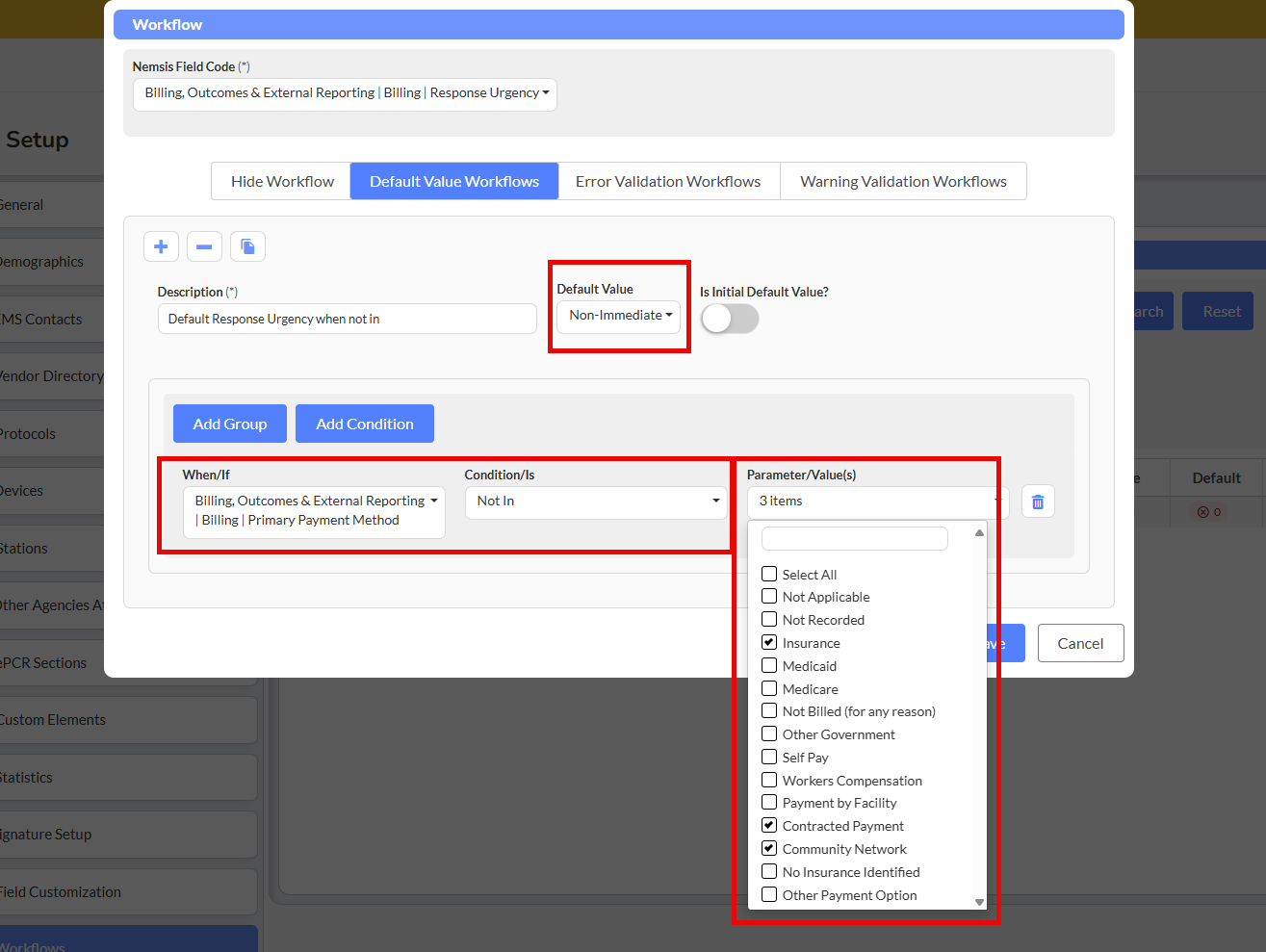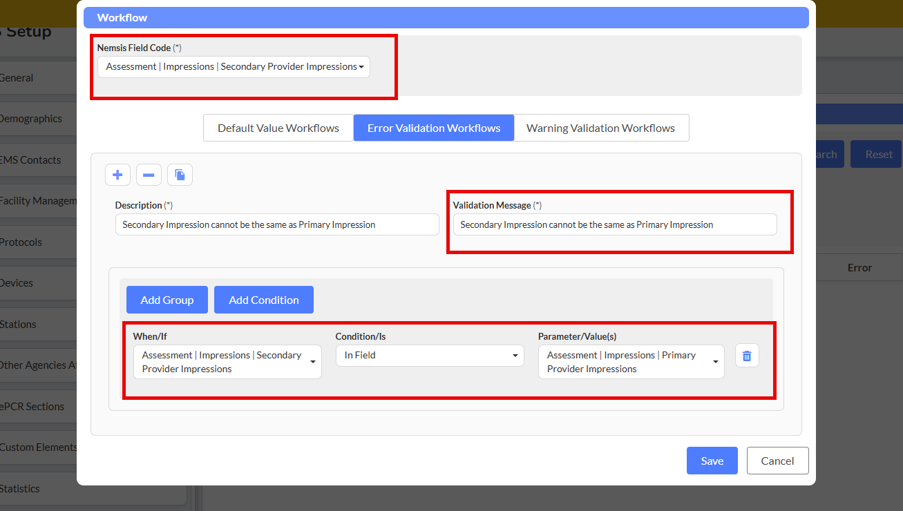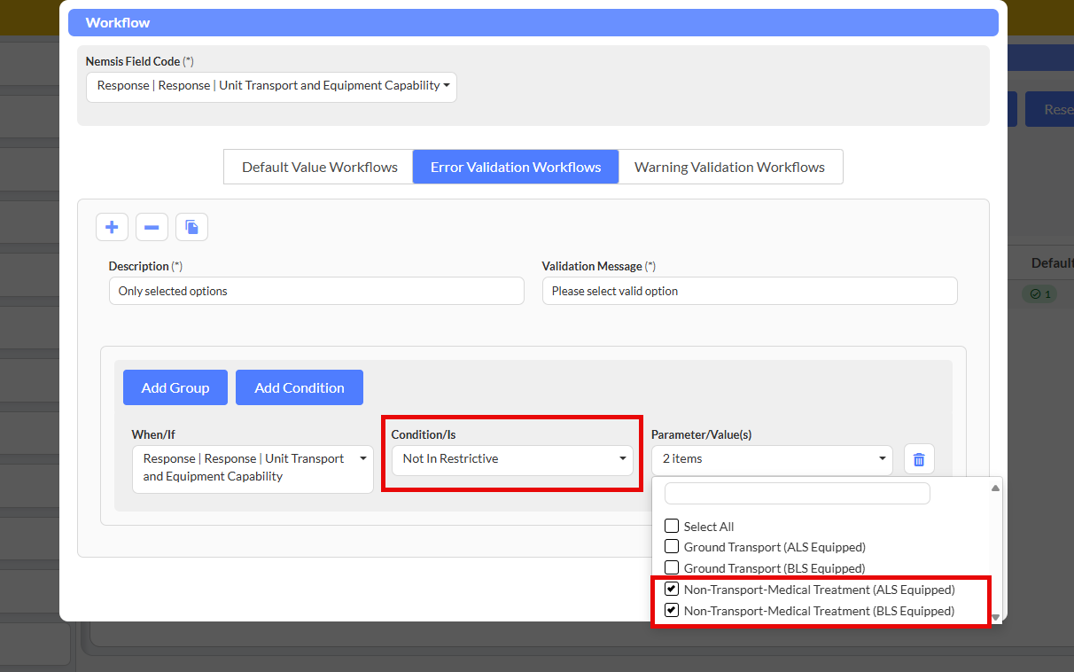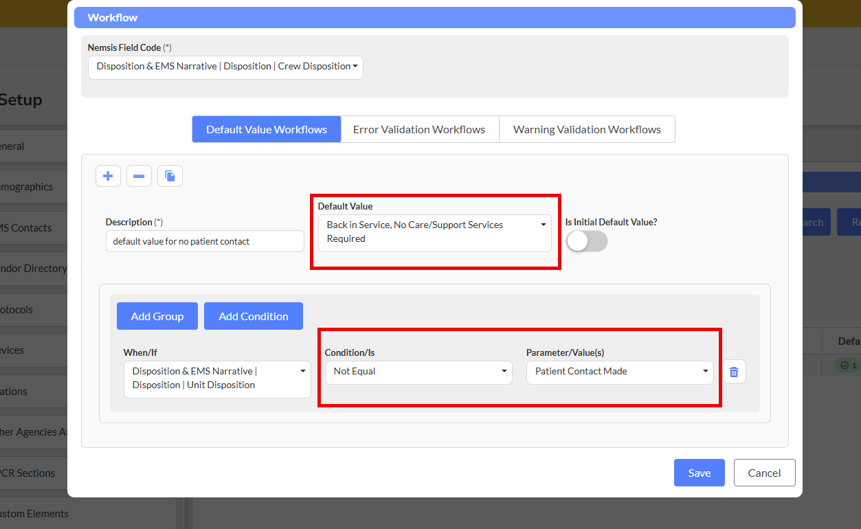- Condition Field: First EMS on Scene