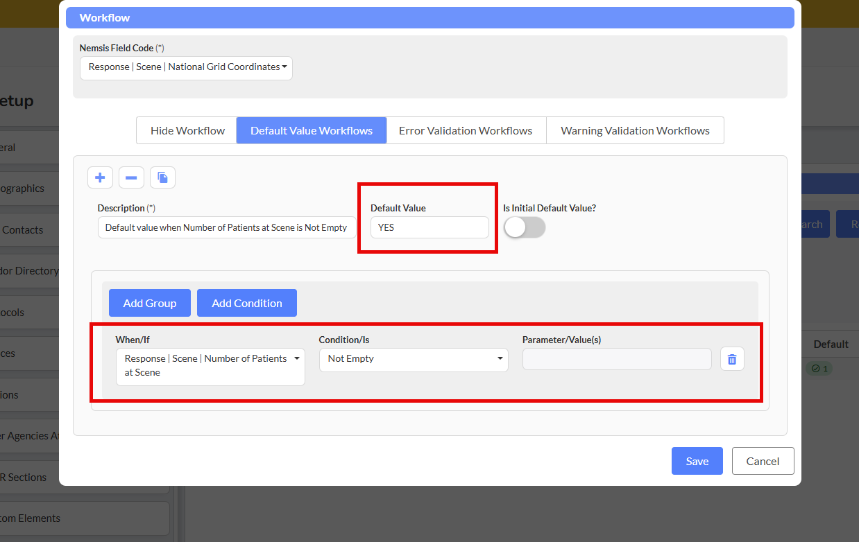 Scenario: Default "National Grid Coordinates" to "YES" when "Number of Patients at Scene" field is Not empty.