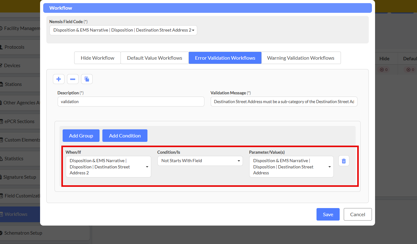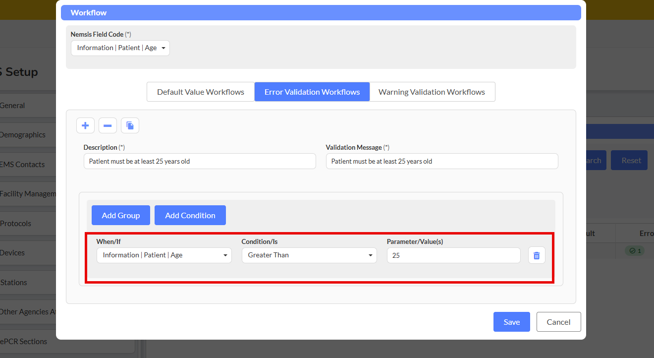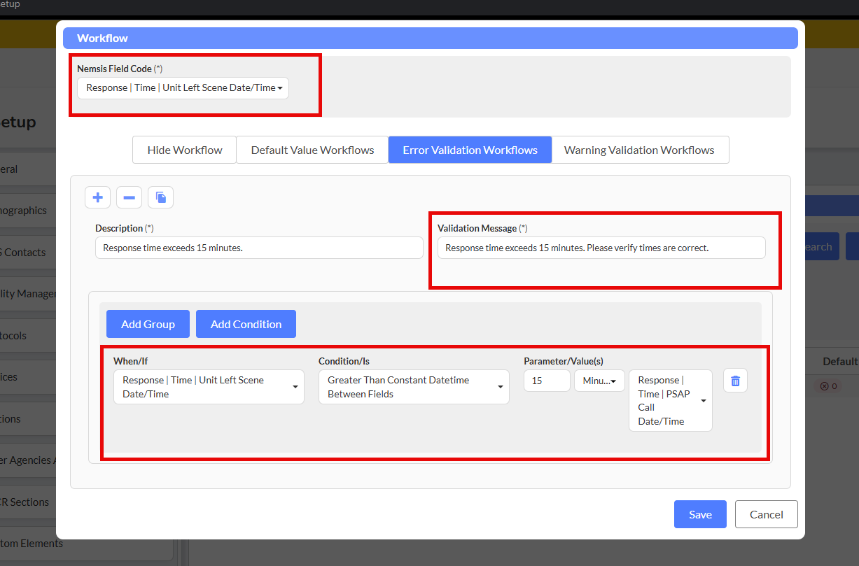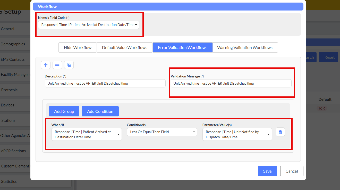 Operators work by comparing field values against defined criteria, and when conditions are met, the system executes your specified actions. Whether you're validating response times, enforcing NEMSIS compliance, or creating intelligent defaults to reduce manual data entry, operators give you the control to build workflows that match your department's unique needs.