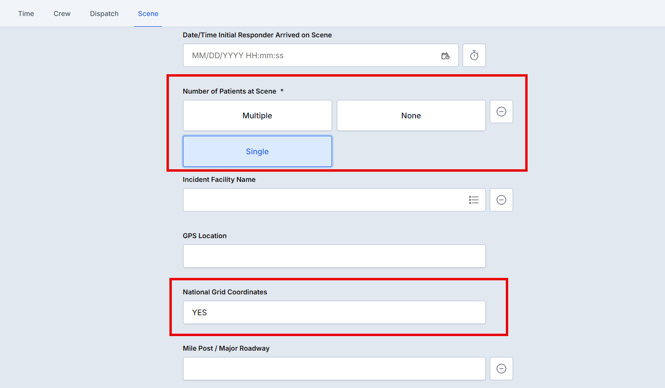 - Condition Field: Number of Patients at Scene
